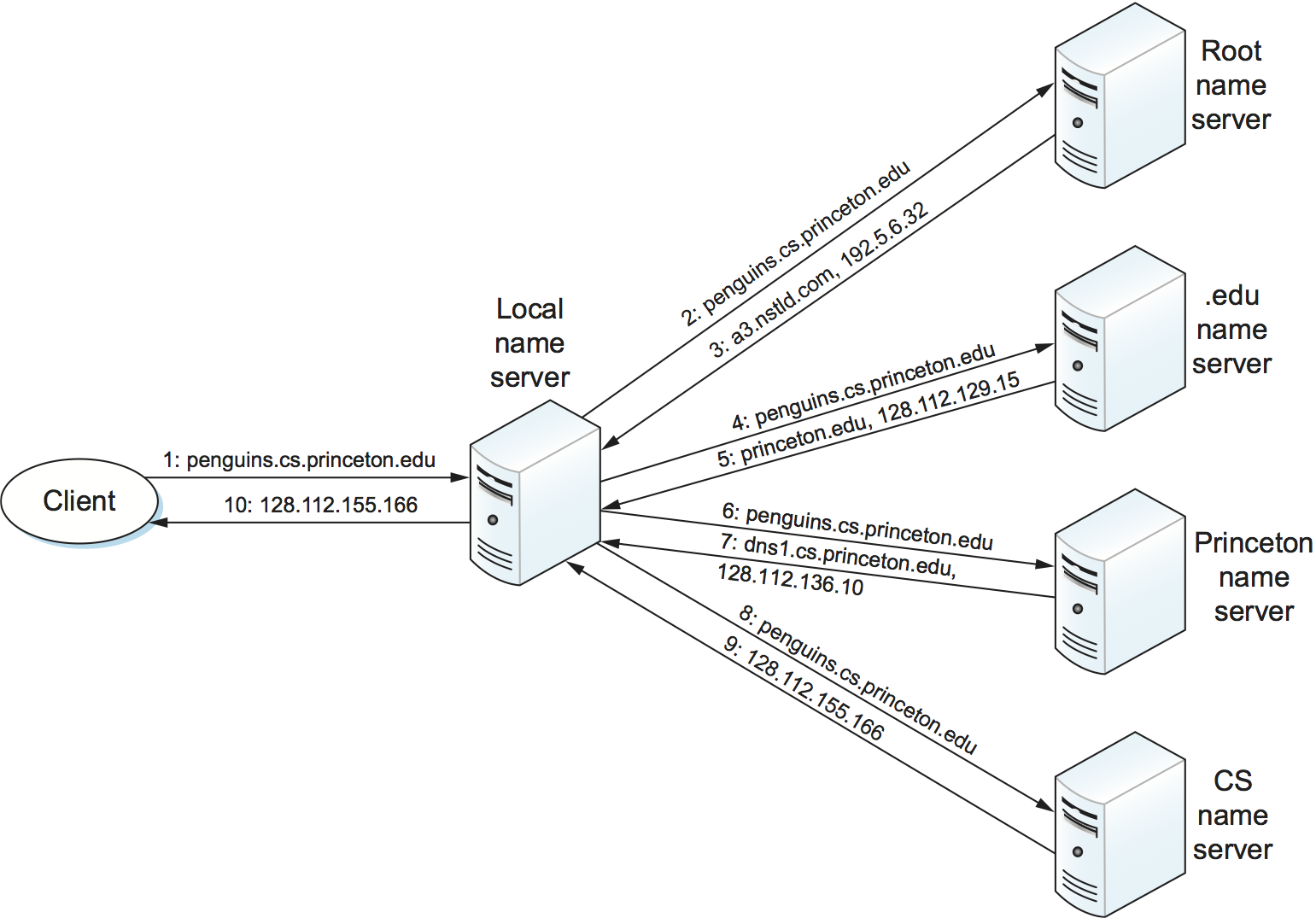 dns1.cs.princeton.edu. This local name server, in turn, has resource