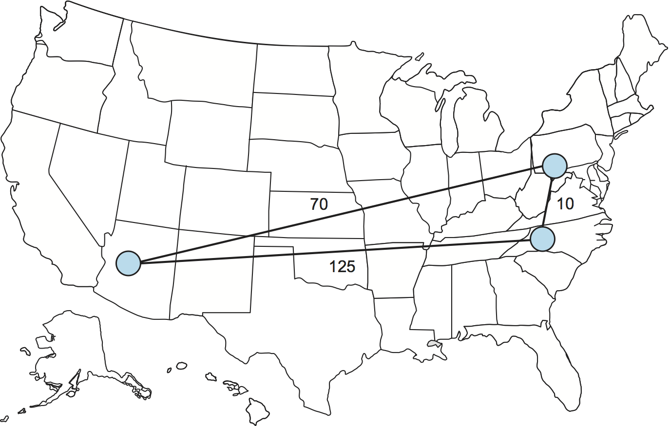 Figure 239. The triangle inequality does not necessarily hold in networks.#