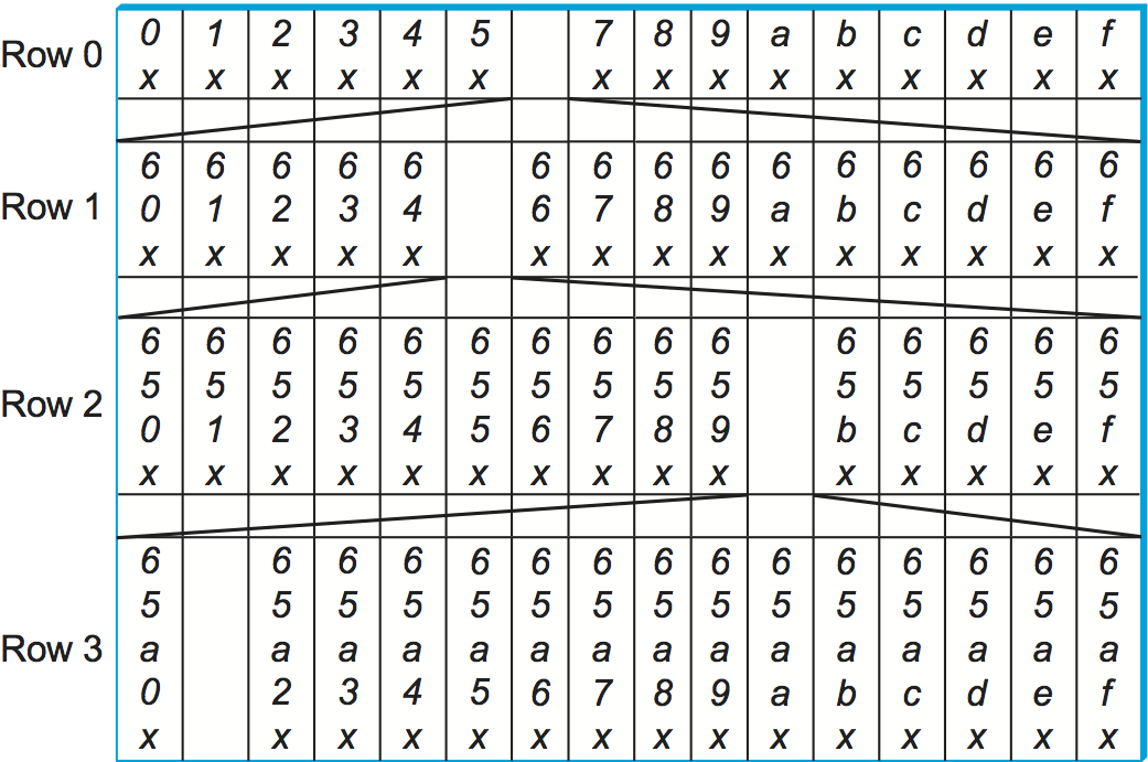 this node, and within this row the entry in column j has the hex value