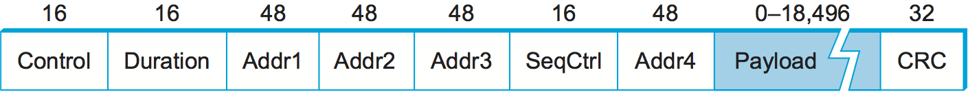 each of which is 48 bits long; up to 2312 bytes of data; and a 32-bit