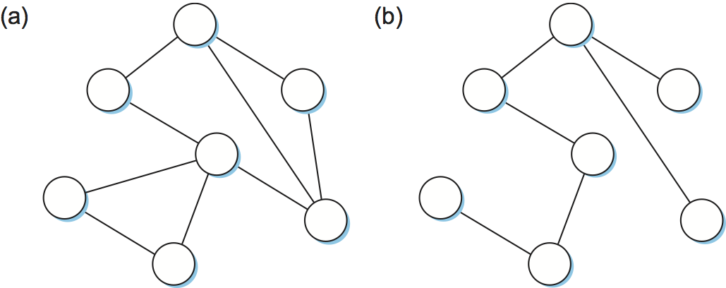 Figure 66. Example of (a) a cyclic graph; (b) a corresponding spanning tree.#